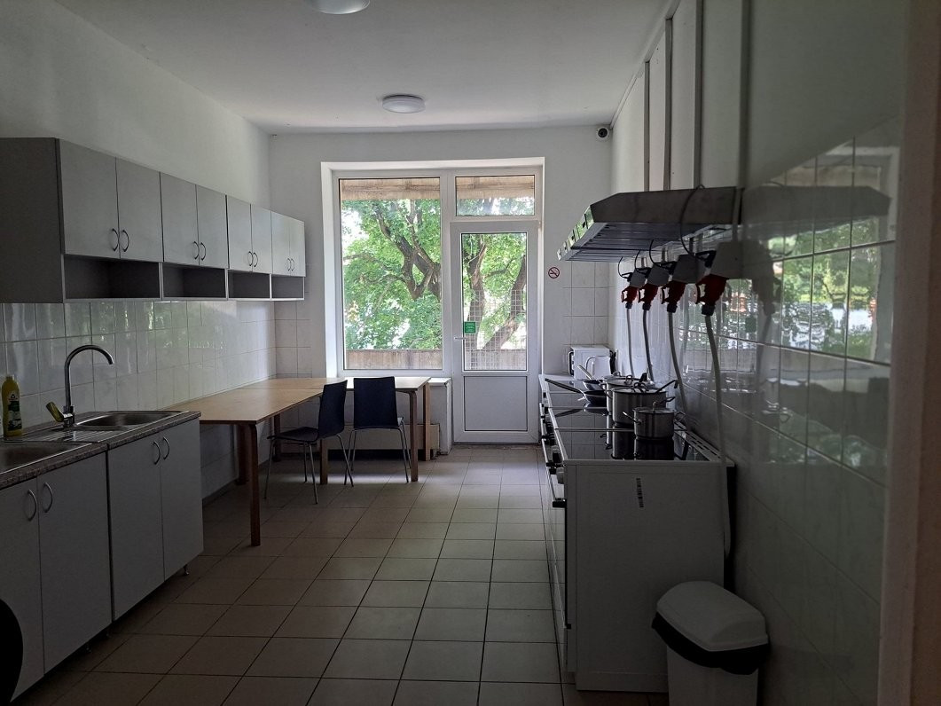 Di lantai dasar gedung terdapat pusat layanan sosial multifungsi "Paaudzes" untuk anak-anak dan orang dewasa, yang juga memberikan dukungan kepada warga sipil Ukraina.